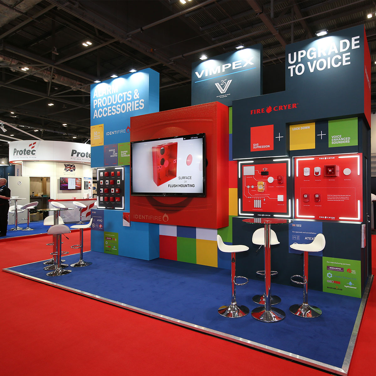 Exhibition Stand design-build, Feature area design-build, Exhibition Graphic design with Shop fitting and interiors completing the group.